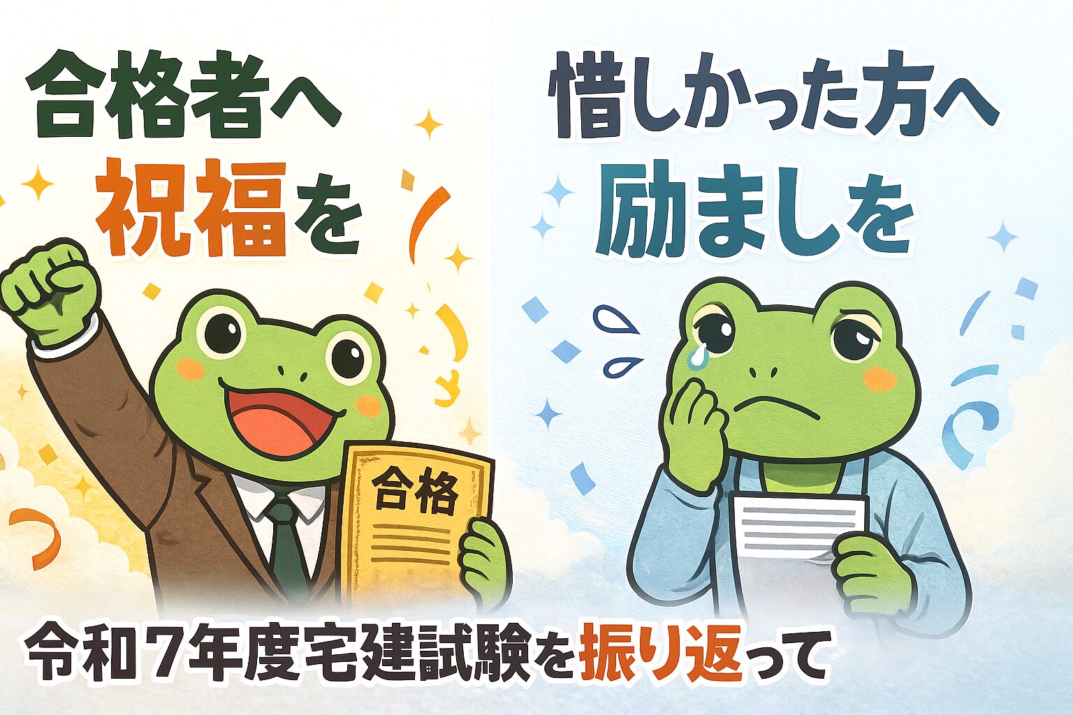 合格された方も、悔しい結果だった方も、令和7年度の宅建試験、本当にお疲れさまでした。